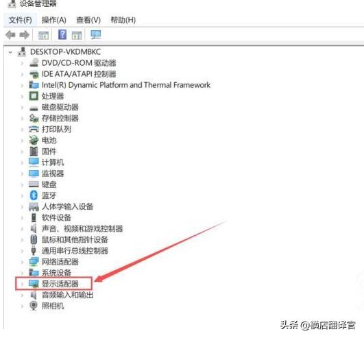 3、在新打开的设备管理器页面里,找到“显示适配器”选项并将其打开;