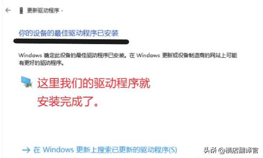 7.最后,搜索到最新驱动后,系统自动替代安装,更新完成